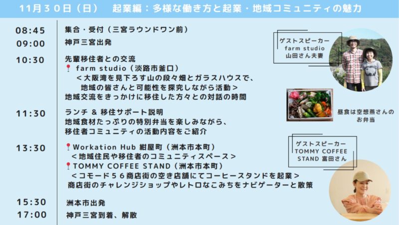 テーマ:淡路島の北部と中部、本州からの玄関口である淡路市と中心市街地である洲本市を巡り、多様な働き方と起業に焦点を当てた行程