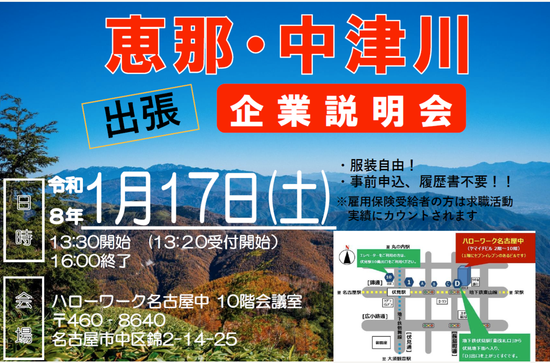 出張企業説明会を「ハローワーク名古屋中」にて開催します。