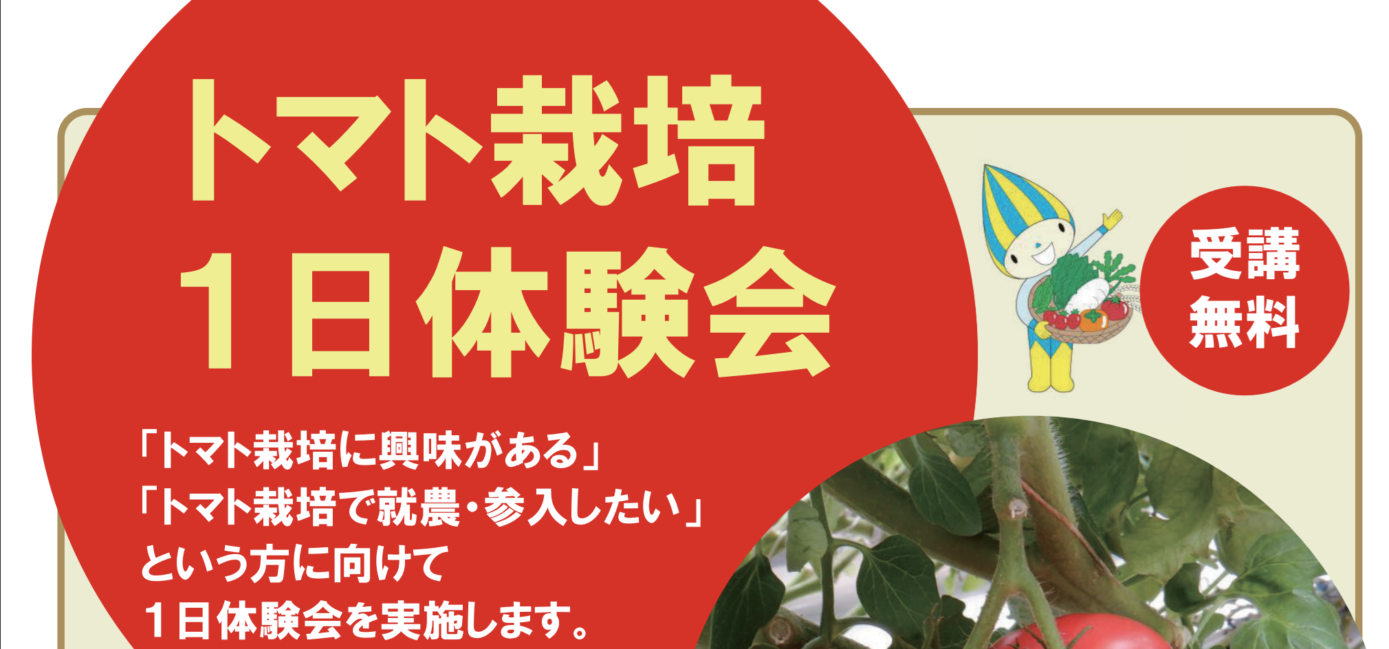 このたび、これまでの長期研修(14カ月)に加え、冬春トマト栽培に関心のある方や農業への参入を検討されている企業の方が気軽に参加できる1日体験会を開催します。