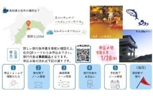 今年度から市が整備したお試し短期滞在施設をご覧いただき、地域移住サポーターの方から土佐市の暮らしについてお話いただきます。