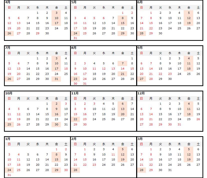 | 開催時間 | 金曜日・第4日曜日 10:00~18:00 ※詳細は上記カレンダーをご確認ください。 |