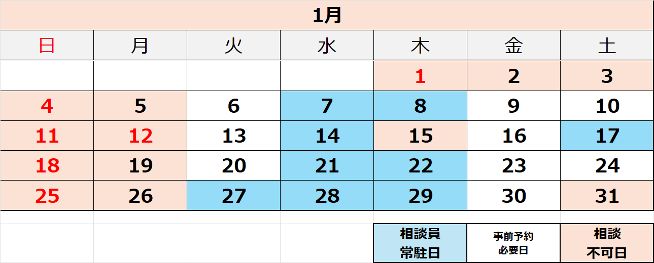 1月の相談予定日は次の通りです。