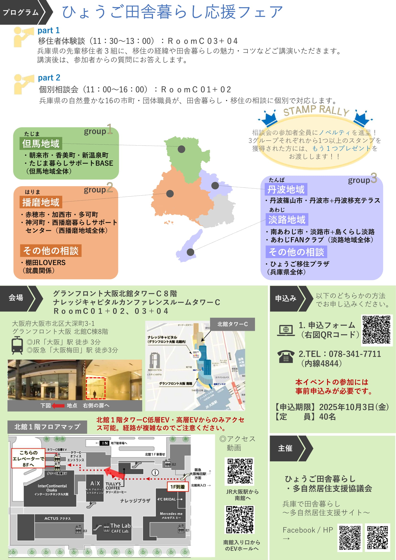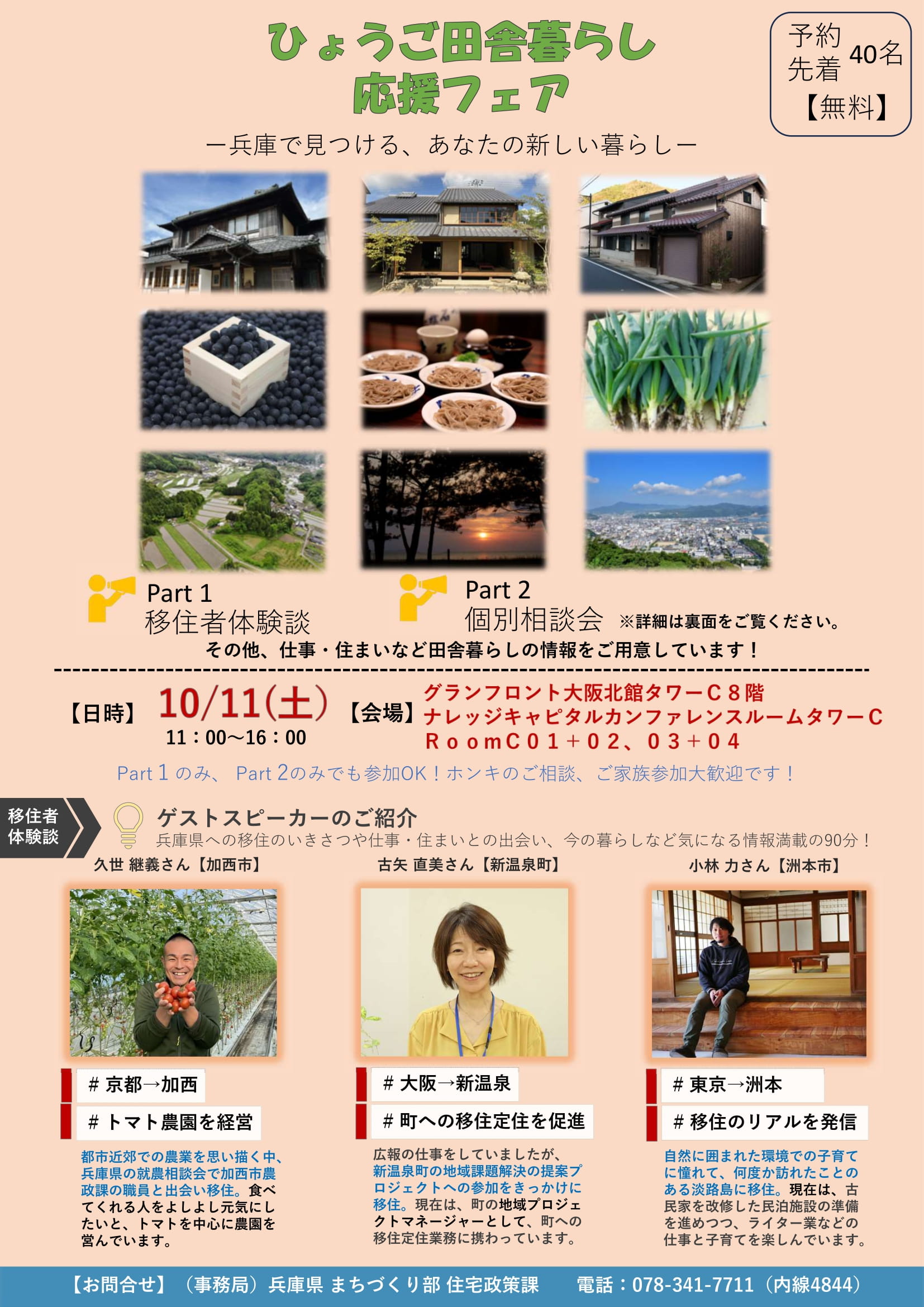 「ひょうご田舎暮らし応援フェア」を大阪で開催します。