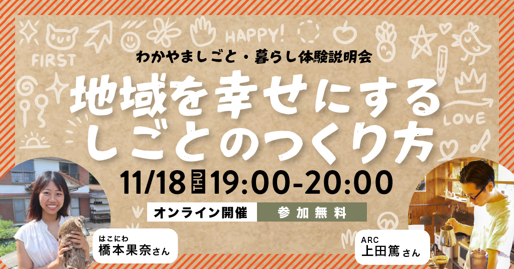 地域への移住に関心がある方や和歌山・関西エリアへのU・Iターンを検討している方はもちろん、ローカルな「しごと暮らし体験」になんとなく惹かれるものがある! という方でも気楽にご参加いただけるトークセッションです。