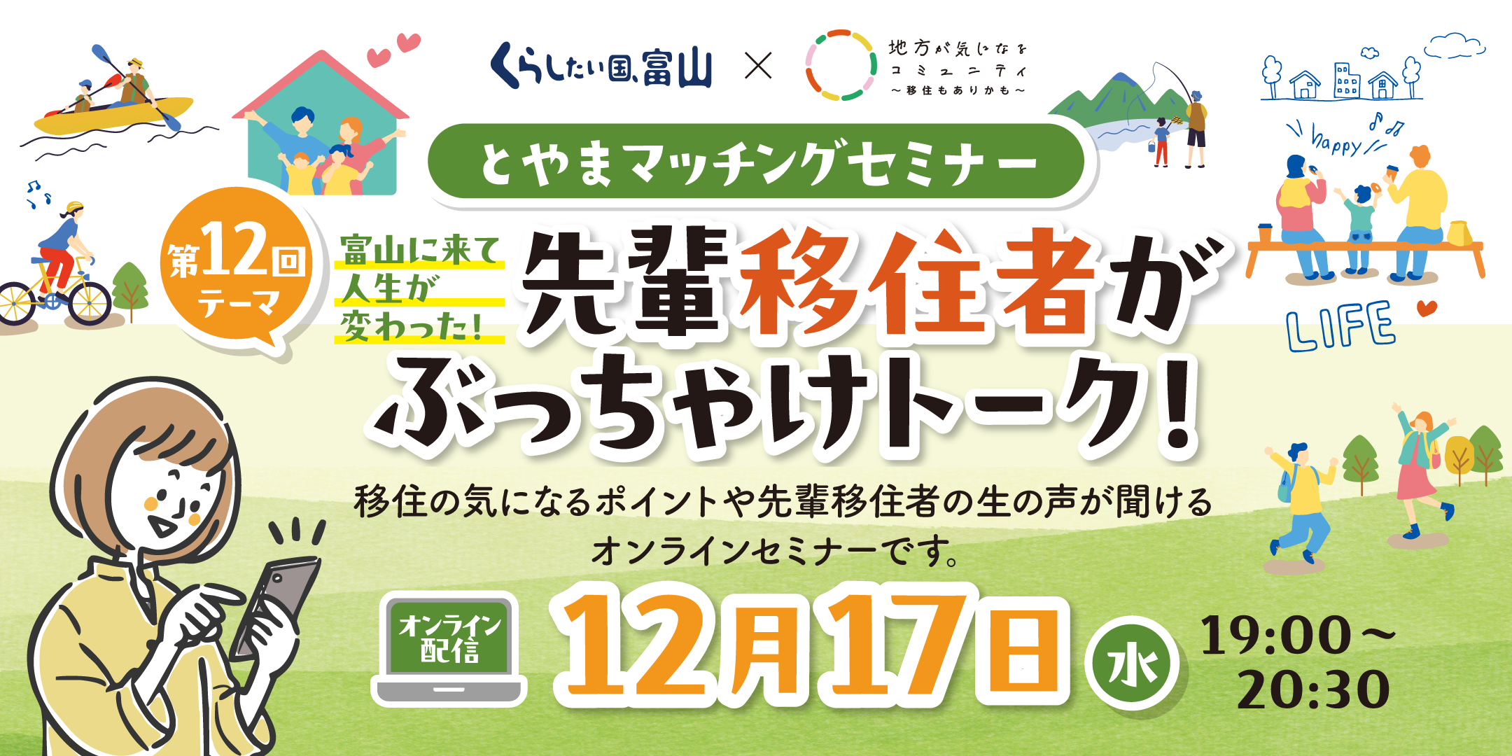 仕事、趣味、自然環境―富山だから叶った「理想の暮らし」と、その裏で悩んだり、自分なりに工夫したりした「リアルな体験談」を聞けるチャンスです。移住に興味はあるけど、不安も多い―そんな方がもう1歩踏み出すきっかけになるかもしれません。
