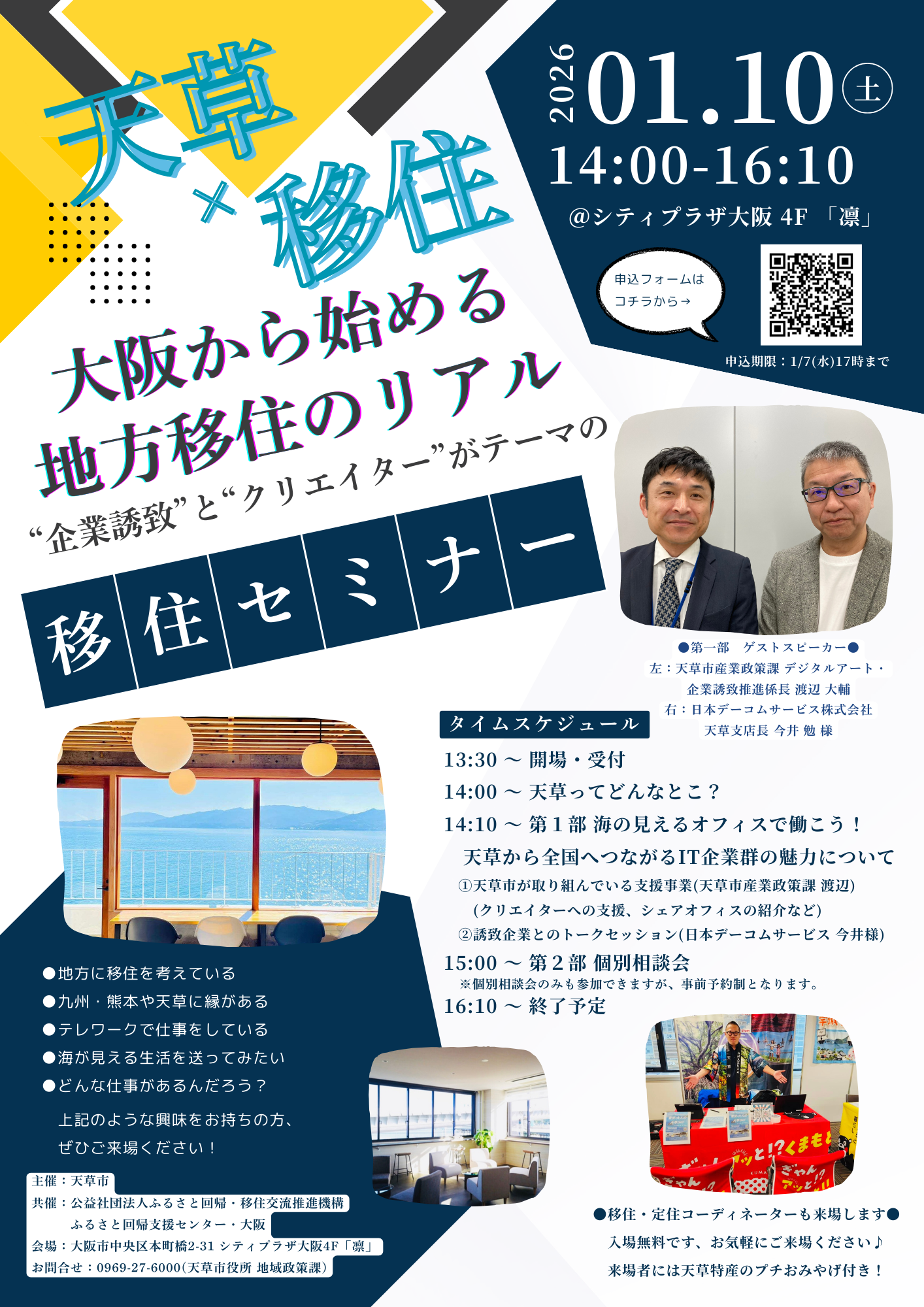 今回は、『大阪から始める地方移住のリアル~”企業誘致”と”クリエイター”~』をテーマとして移住セミナーを開催します!
