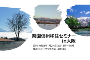 ※定員に達したため、受付を終了しました 今回のテーマは【冬の上手な暮らし方~寒さと雪と住宅と~】 「長野県へ移住したいけど、雪かき必須でしょ?」「長野県へ移住したいけど、きっと寒いんだろうなぁ・・・」など、疑問や不安は尽 … 続きを読む ★満員御礼★楽園信州移住セミナーin大阪