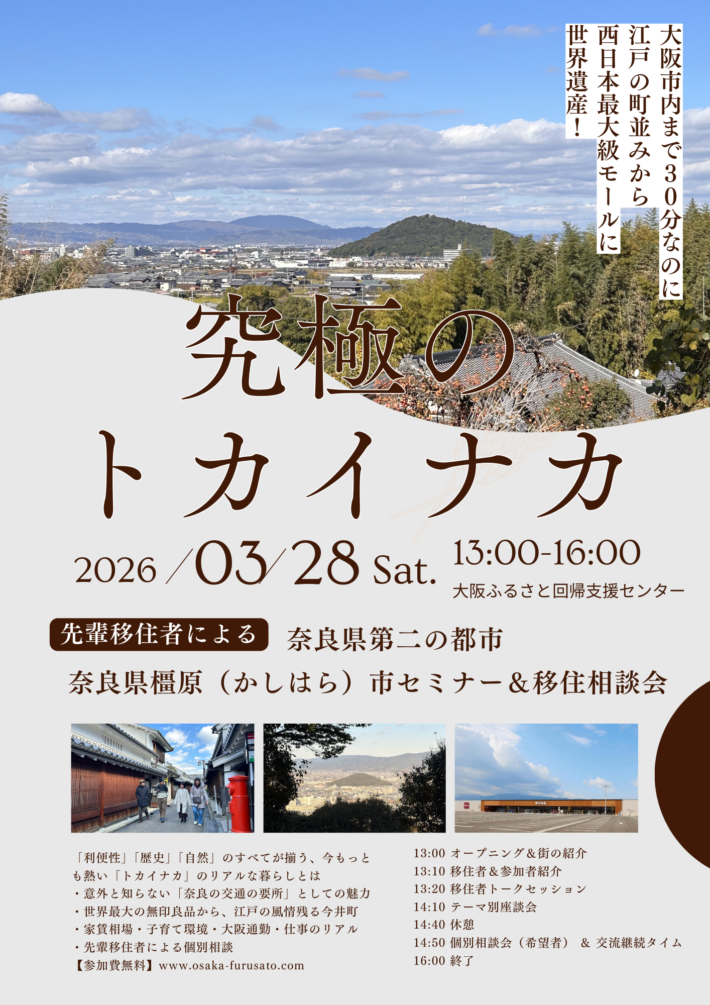 2026年夏の「世界遺産」登録への期待も高まる今、橿原市でのリアルな暮らしの魅力を、移住者たちをゲストに余すことなくお届けします。
