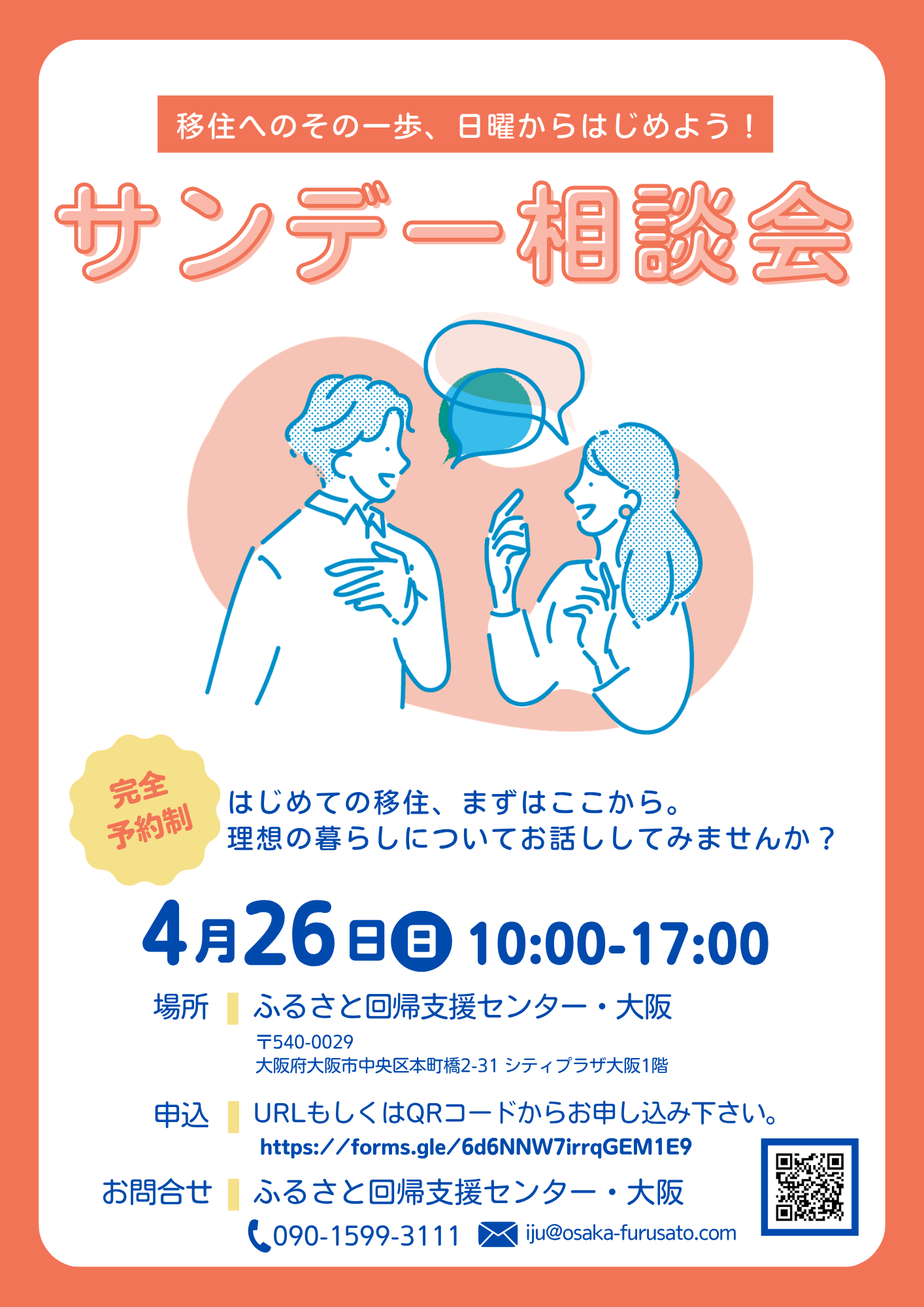 そんな皆様のために、日曜日の移住相談会を開催します。