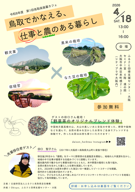 地方移住・鳥取移住また農業や起業などに少しでもご興味がある方はぜひお気軽にご参加ください。